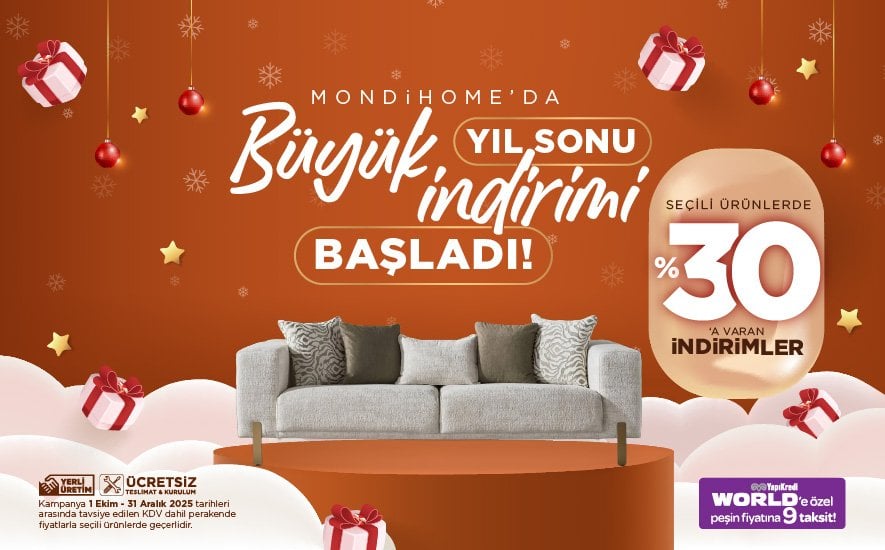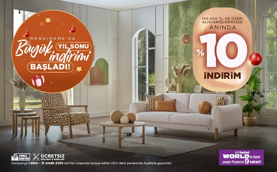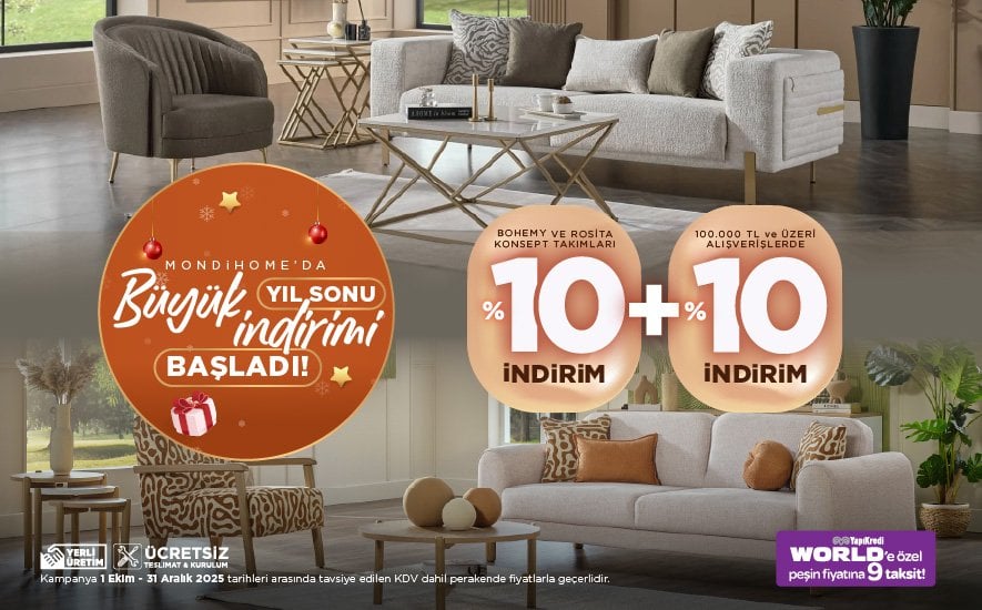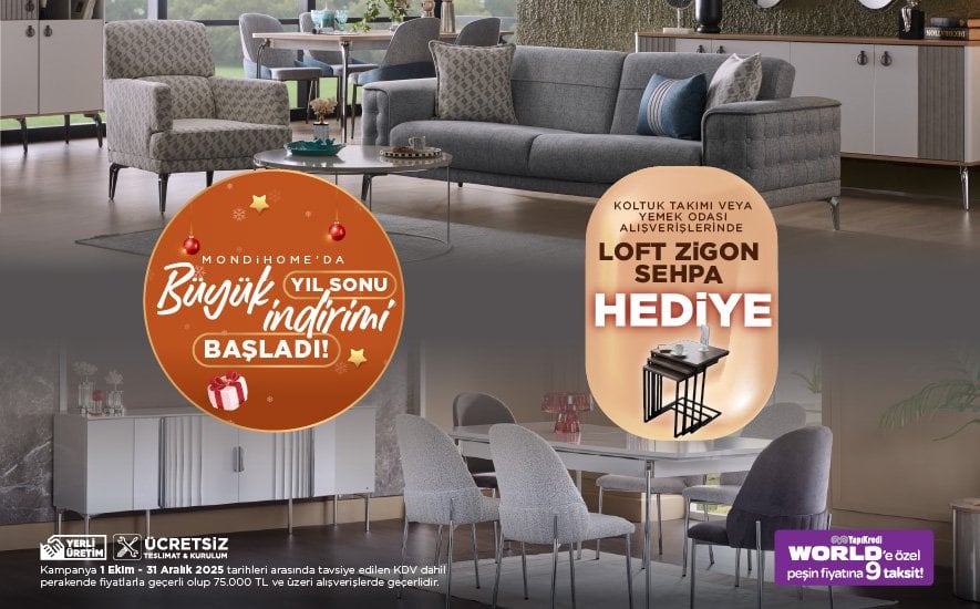 Modern tasarımlar, konforlu detaylar ve özel kampanya fırsatlarıyla evinizi baştan yaratın! Mondihome mağazalarından yapacağınız 75.000 TL ve üzeri Koltuk Takımı ve Yemek Odası Alışverişlerinde geçerlidir.