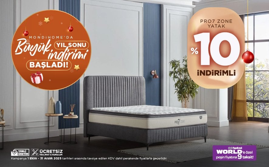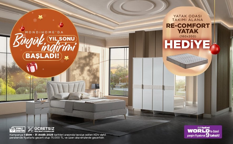 Şıklığı ve konforu buluşturan bu özel kampanyayı kaçırmayın Mondihome’da evinizin her köşesi daha rahat, daha özel! Mondihome mağazalarından yapacağınız 75.000 TL ve üzeri Yatak Odası Alışverişlerinde geçerlidir.